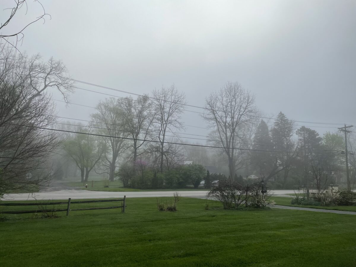 My work BFF had to take her kids to school after a fog delay on Friday, and texted me a photo of her Very Foggy Back Yard. I sent her this photo of our front yard and mildly foggy neighborhood beyond as a comparison. The densest fog in our area seemed to appear just after sunrise, which seemed odd to me, and it didn’t last long. The photo above was taken after the worst of the fog had lifted.