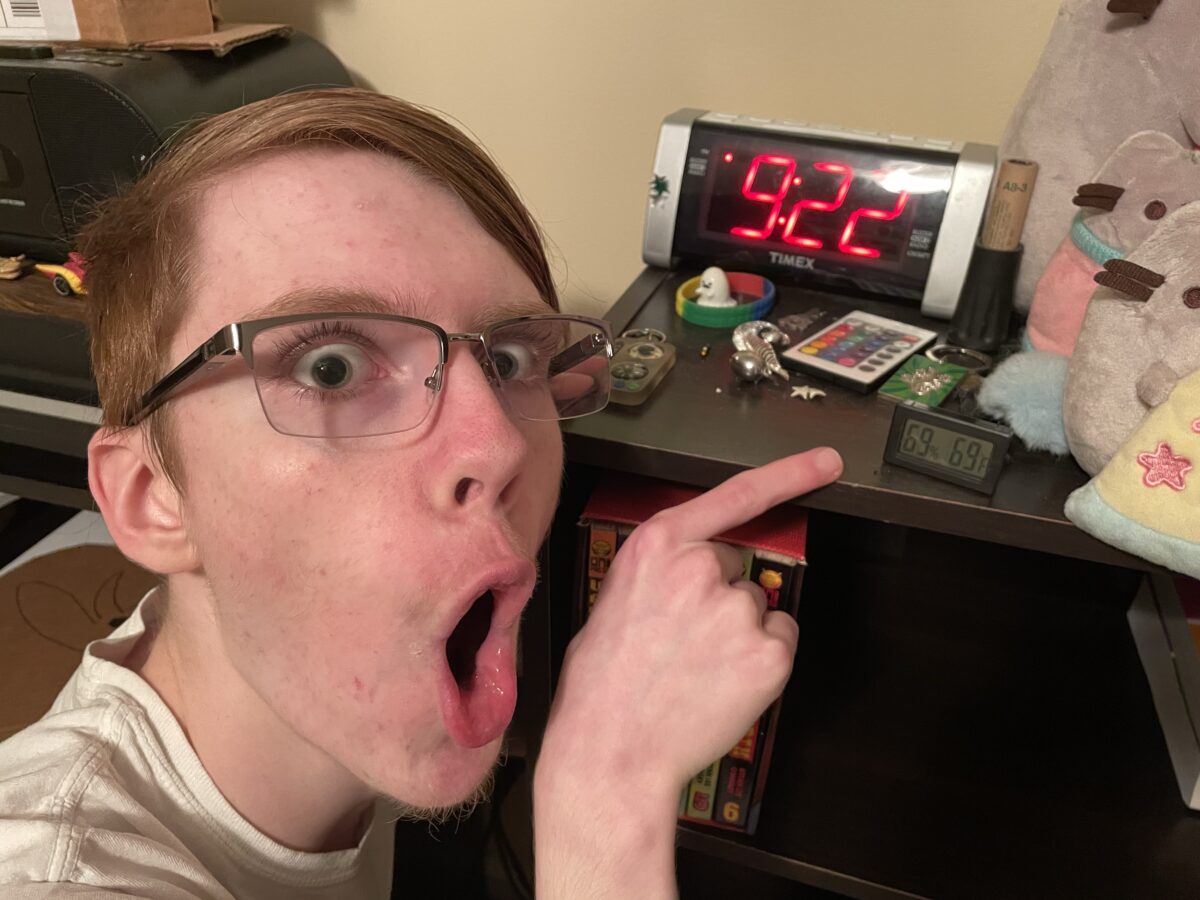 Last night, Connor saw the temperature and humidity readings on the thermometer in his bedroom, and breathed on said thermometer and waited until both readings matched: 69% humidity, 69 degrees F. Then he convinced me to take a picture. LOL.
